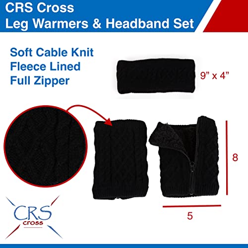 CRS Cross Leg Warmers and Headband Set for Figure Skating with Zipper. Fleece Lined Knit Keeps Legs cozy-Ice Skate Dance