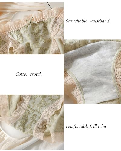 Floral Embroidered Cotton Panties Set for Teen Girls Age 8-18 Cute Y2K Lolita Underwear Frill Trim Mid-rise Briefs