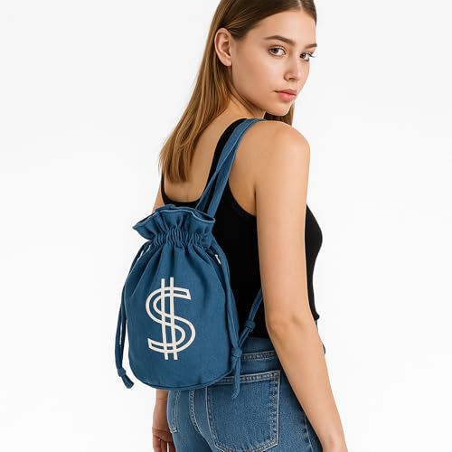 【sophisticated & Durable】Our lightweight natural color denim material ensures durability and long-lasting use. With 3 different colors designs, this backpack caters to your fashion sense and suits various occasions.【Size】Our dollar sign backpack bag measures 7.48x7.08x12.99 Inches, Weighing a mere 0.74lb, it's perfect for commuting, the gym, and daily use. Made of high density canvas, soft, lightweight but sturdy.【Coin Pouch】This coin pouch is made from durable canvas and measures 4.52 x 7.87 inches, so funny to store all the coins and card. And it is equipped with a buckle design and zipper.【Funny Design】Stand out when you walk down the street. This backpack perfect for weekend getaway bag, college bag, very snazzy for go shopping or do outdoor activities.【Versatile & lightweight】This backpack's lightweight construction makes it comfortable to carry throughout the day, cute casual and work bags to carry all your small daily essentials. Perfect for everyday use. first-class materials and excellent craftsmanship ensure long-lasting durability.