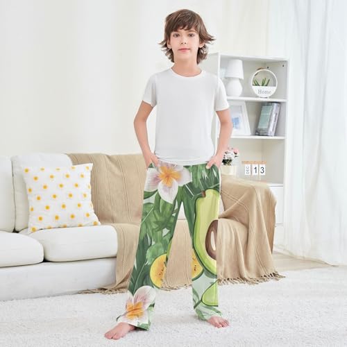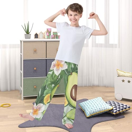 in-demand ! ZZXXB Tropical Avocado with Flowers Boys Long Pants plush Trousers Elastic Waist Kids Lounge Bottoms with Pockets S-XL