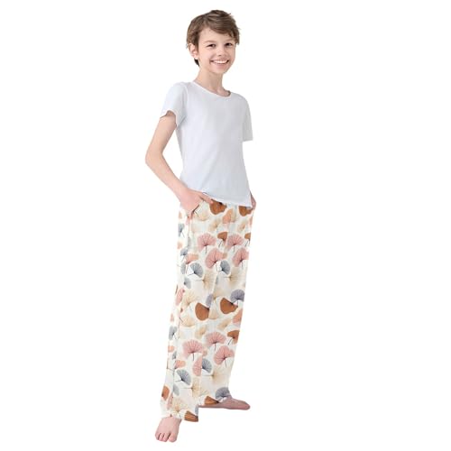 in-demand ! Ginkgo Leaf Long Pajama Pants Elastic Waist PJ Bottoms with Pockets S A110875