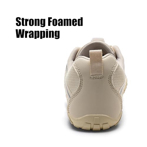 Sole material: RubberOuter material: Fly-weaveClosure type: ElasticWater resistance level: Not Water ResistantComfortable & Breathable: These water shoes feature a mesh fly-weave upper that fits like a soft, snug sock. Lightweight, flexible, and easy to pack, they're the perfect travel companion for your feet, offering breathability and a barely-there feel.Barefoot Shoes: Our minimalist sneakers provide a barefoot feel, allowing for natural foot movement. The zero-drop design promotes proper body alignment and a more natural gait.Anti-Slip: Our unisex beach shoes come with an five toes design anti-slip rubber sole that provides shock-absorbing cushioning and a protective toe guard, ensuring durability and preventing fraying around the toes in no time.Easy Slip-On: The convenient slip-on design of wide toes shoes with an adjustable strap ensures a secure fit and makes it easy for you to put on and take off, no more struggling with shoelaces.Versatile Use: fashionable and practical, these barefoot water shoes are perfect for beach, swimming, pool,aqua sports, surf, scuba, snorkeling, sailing, boating, kayaking, travel, walking, hiking, tennis, sports, training, gym, running,jogging, workout, yoga and everyday indoor outdoor casual wear. Wherever your adventure takes you, they're ready to go. Perfect for everyday use. supreme materials and excellent craftsmanship ensure long-lasting durability.