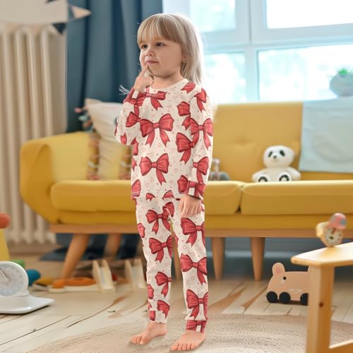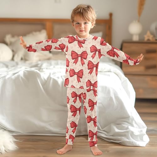 Pajama Sets Long Sleeve Red Bows Hearts Cream Background silky Comfy Sleepwear 2 Piece PJS 3-8T