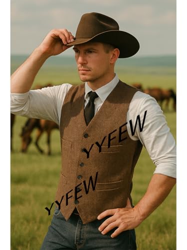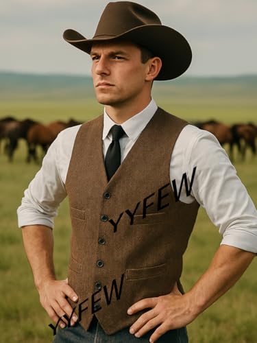 in-demand ! Hunting Mens Herringbone Vests Western Tweed Waistcoats Cowboy Vest for Men Vintage Casual