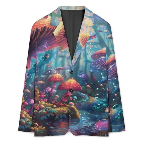 Mushroom with Overflowing River Mens Casual Blazer Button Suit Jacket Lightweight Sport Coat for Work Business