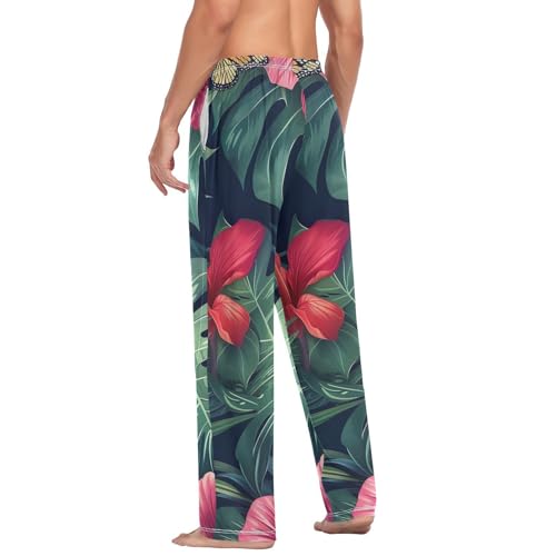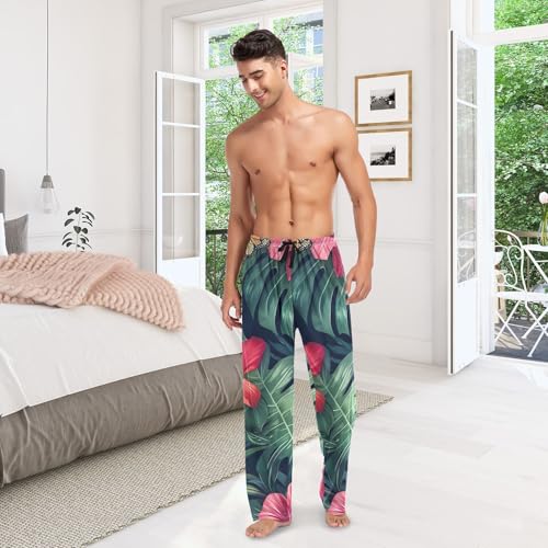 More information about Men's Pajama Pants Tropical Leaf and Flowers Sleep Pajama Lounge Pant with Pockets, Elastic Waistband