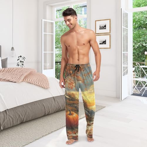 ALAZA Thanksgiving Pumpkins Nautical Boat Men’s Pajama Pants silky Long Sleep Pants Lounge Pajama Bottoms with Pockets