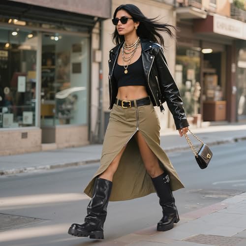 Sole material: RubberOuter material: Faux LeatherClosure type: Pull-OnPrecise Sizing: These boots for women knee high have a 1.97 inch heel height and run true to size - select your regular shoe size for best fitThickened Upper Material: These foldover boots feature a soft faux leather upper and a plush thick lining for excellent winter warmth, while still maintaining fashionable profileSide Zipper & Metal Buckles: With decorative metal buckles and side zippers, these tall biker boots feature an easy pull-on design for bold gothic stylingChunky Treaded Sole: These platform combat boots ensure steady footing with deep treads on the platform sole, gripping wet and uneven surfaces effectivelyVersatile Styling Scenes: Style these shark boots with fishnets for edgy gothic looks, or wear them with jeans, skirts and dresses for everyday outfits Perfect for everyday use. supreme materials and excellent craftsmanship ensure long-lasting durability.