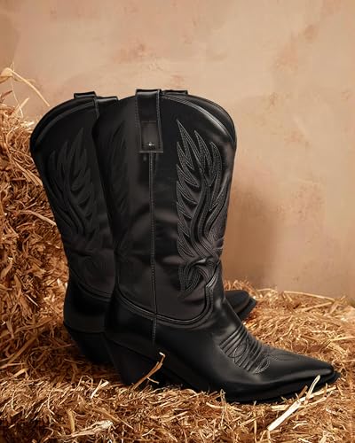 MUCCCUTE Cowboy Boots for Women – Mid Calf Cowgirl Boots Embroidered Chunky Heels Pointed Toe Pull On, ideal for Partys, Country Music Festivals, Concerts, and More
