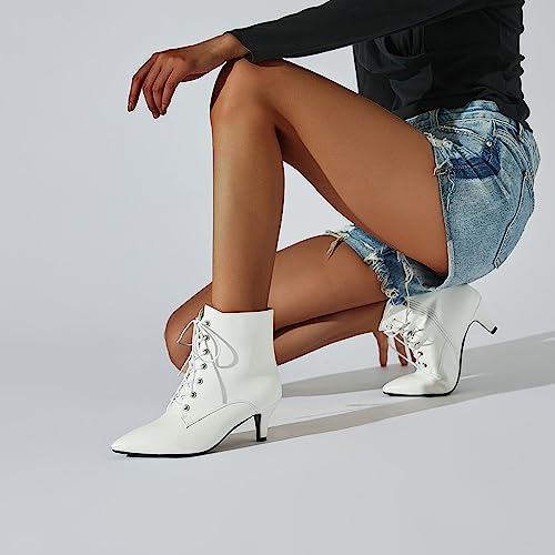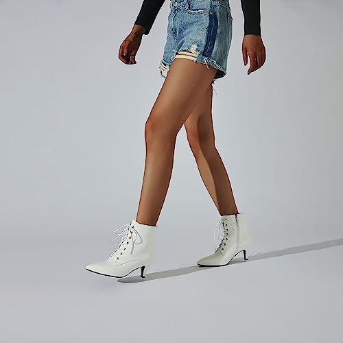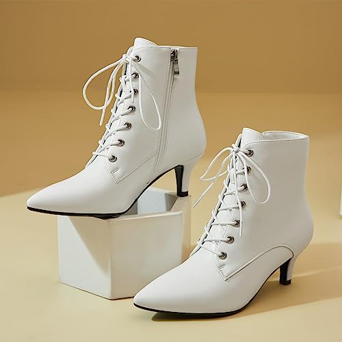 • [Item Features]: Pointed toe, kitten heel, low mid heel, solid color, side zipper, lace up are whole the characteristics of women ankle boots, not ever outdated! Comfy stable kitten heel increases your height and visually looks longer legs.