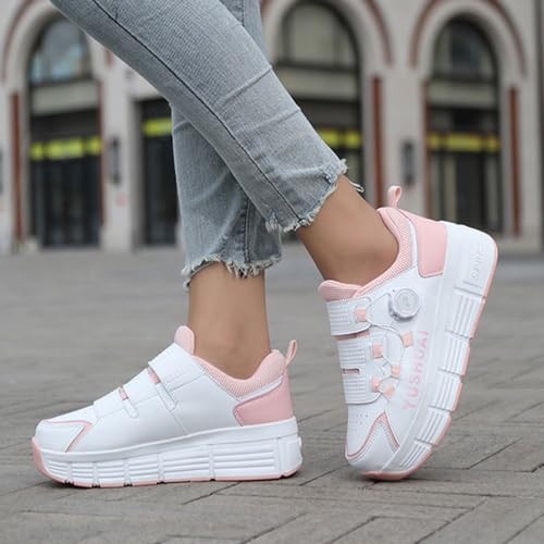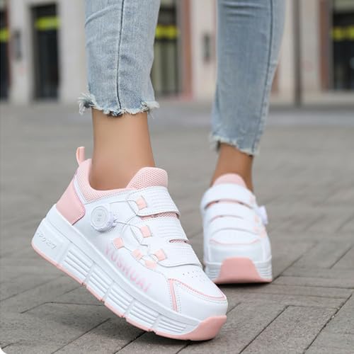Closure type: Lace-UpVersatile Design: These wheeled skate sneaker shoes are perfect for both boys and girls. With their sophisticated and trendy appearance, they combine the functionality of sneakers with the added fun of wheels, making them suitable for various activities. Invisible button on the back of the shoe, press the button to open/close the roller.Premium Quality: These roller shoes are crafted with Safe and Durable Materials, ensuring durability and long-lasting performance. wear-resistant soles, PU roller, rollers can carry 85KG,add lubricant before use to reduce friction and make it easy to slide.Easy and Convenient: The roller shoes feature hidden wheels that can be easily activated or retracted, allowing kids to switch between rolling and walking modes effortlessly. The convenient design enables children to enjoy the thrill of skating whenever they desire.2-In-1 roller skates: Adjustable multi-purpose skates are different from traditional roller skates on the market. It can be used for inline skating, ordinary sports shoes and walking shoes.Perfect Gift Choice: These roller shoes make for a wonderful gift option for children. Whether it's for skating, parties, or casual wear, these shoes with wheels will surely delight and entertain kids. They offer a unique and exciting way to stay active and have fun. Perfect for everyday use. first-class materials and excellent craftsmanship ensure long-lasting durability.