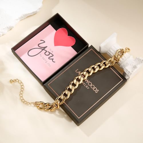 LANE WOODS Chunky Gold Bracelet for Women 14k Gold Plated Chain Link Bracelet for Men timeless Jewelry