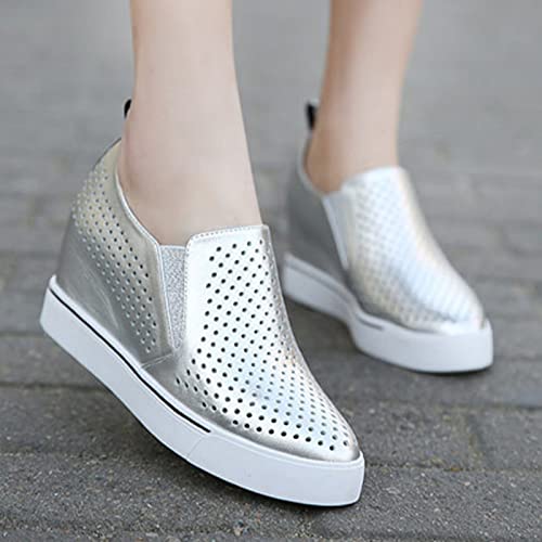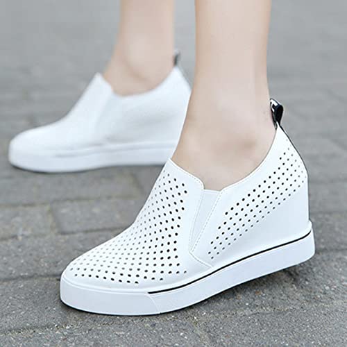 AngryMonkey Women's Hidden Wedge Sole Booties,Ankle Heels Vulcanized Hollow Breathable Comfy Slip on Sneakers Platform Shoes
