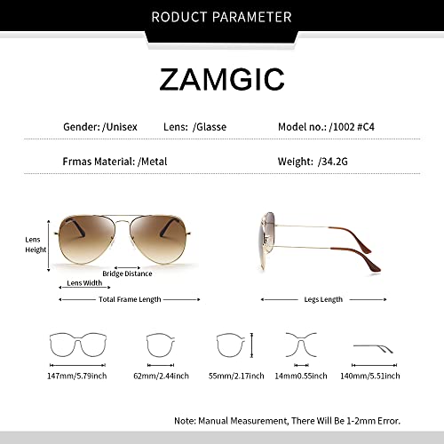 Origin: Imported【GLASSES LENS DESIGN】- Glass lenses, corrosion-resistant, not easy to scratch, each lens can effectively block harmful light and improve visual comfort.【MILITARY AVIATOR STYLE】- Timeless aviator style, fashionable and vintage, trendy and versatile, suitable for all face shapes.【METAL FRAME WITH DOUBLE SCREW】- Assembled with alloy materials, double reinforcement of double screws, can withstand tens of thousands of openings and closings.【ONE SIZE FOR MOST PEOPLE】 - Lens Width:1.97inch, Lens height:1.58inch, Bridge width:0.83inch, Frame width:5.61inch, Leg length:5.51inch.【REST ASSURED TO BUY】If there is any quality problem happening, please contact the seller without any hesitation, we will reply to solve the problem within 24 hours until you are satisfied. Perfect for everyday use. first-class materials and excellent craftsmanship ensure long-lasting durability.