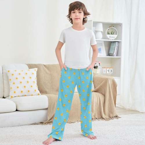 Boy's Lounge Pants Little Yellow Duck Blue Kids Jogger Pants Elastic Waist Long Bottoms with Pockets 6-14 Years