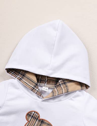 Toddler Baby Boy Clothes Outfits Plaid Bear Long Sleeve Hoodie Patchwork Pant Boy 2PC Outfit Set