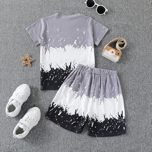 Kids Tween Boy Casual Clothing Set Letter Graphic Colorblock Tee +Shorts Summer Clothing Set
