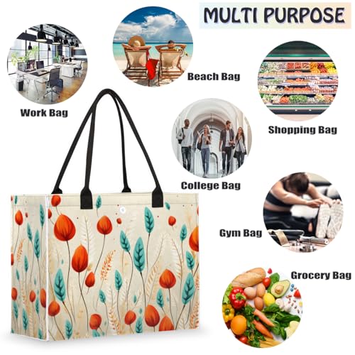 Autumn Plants Tote Bag for Women Large Beach Bag Reusable Tote Bags for Work Travel Beach Shopping