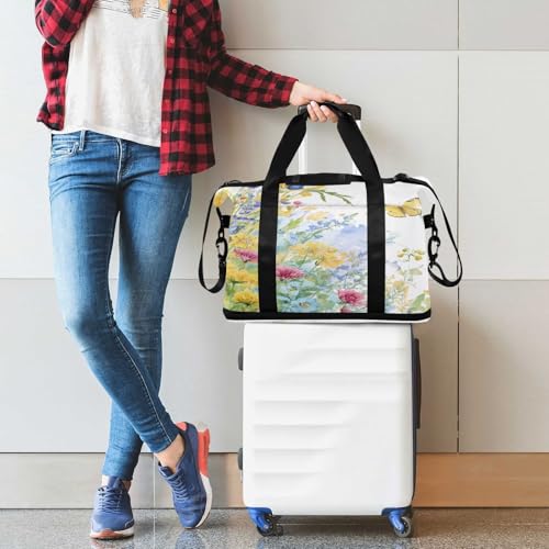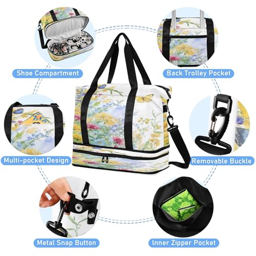 More information about Flowers and Butterfly Gym Bag - Weekender Overnight Bags for Women Men, Sport Travel Duffel Bag with Wet Pocket & Shoe Compartment