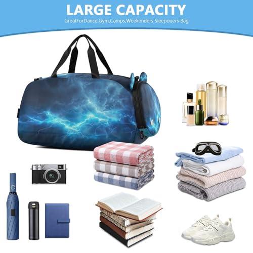 YETTASBIN Sport Travel Duffel Bag for Girls Boys, Thunder Lighting Large Waterproof Weekender Overnight Bag, Detachable Shoulder Strap Gym Bag with Shoe Compartment & Wet Pocket