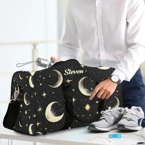Custom-Duffel-Bag for Men Women Small-Overnight-Bag Moon Black Weekender Luggage Bag