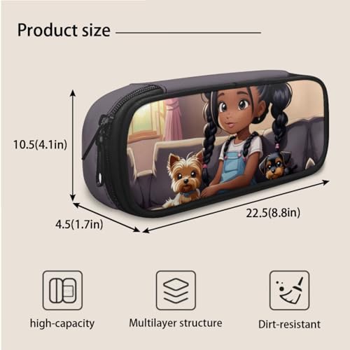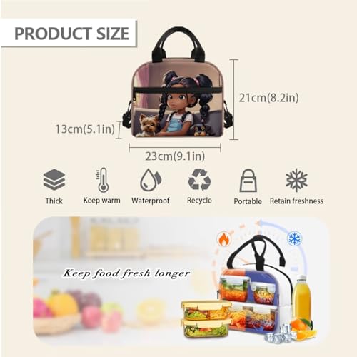 African Black Girls Bookbag Yorkshire Terrier Backpack with Lunch Box 1 Grade/2Nd Grade Afro Kids Book Bag Lunch Bag Kindergarten/Elementary School Bag Lunchbox Pencil Pen Case School Bag