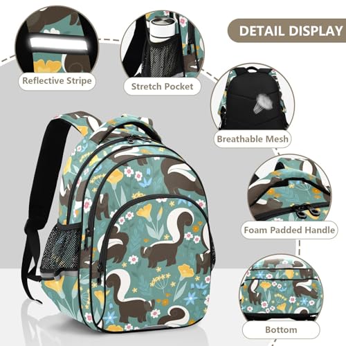 Cute Skunks and Flowers Backpack for Kids Elementary School Bag Boys Girls Bookbag Travel Backpack Daypack
