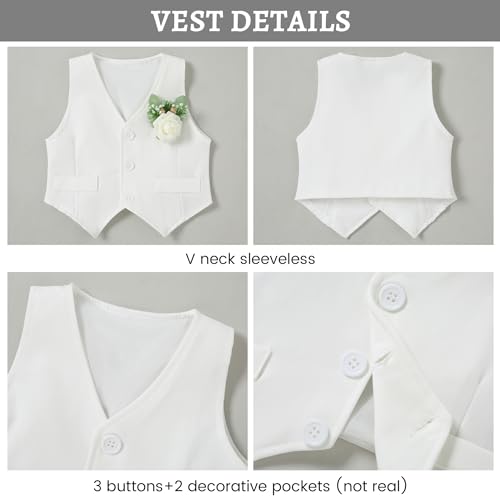 • Vest Details:This baby boy christening outfits 5Pcs set includes a Boutonniere,a vest that features 3 buttons single-breasted closure and double lining in the back, optimal warmth, and ease of layering