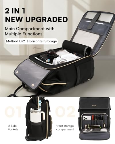 • New Upgraded Design This rolling backpack integrates vertical and horizontal storage, providing flexibility for different needs. The wheeled backpack magnetic flap keeps things contemporary and organized