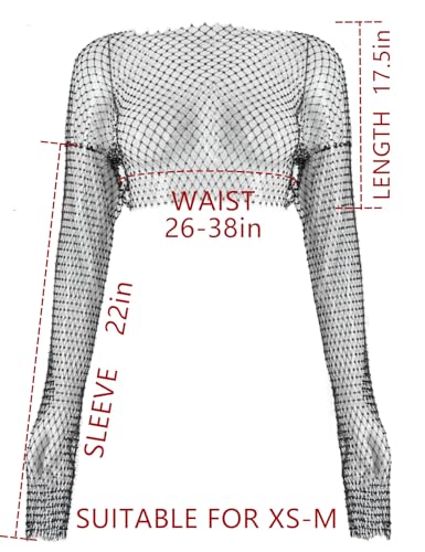 Fabric type: 100% PolyesterCare instructions: Hand Wash OnlyOrigin: ImportedClosure type: Pull OnMaterial: Made of high-quality sparkly rhinestone and polyester, our rhinestone crop tops offer both durability and a glamorous shine.Features: Crop Length, Long Sleeve, Round Neck, Mesh Body Chains, Rhinestone Fishnet.Styles: Embrace your bold and sexy side with our crystal see through mesh fishnet Shirts. Perfect for rave parties, concerts, festivals, or nightclub dancing.Design: Featuring a mesmerizing rhinestone fishnet design, our tops are see-through and offer a seductive allure. They can also be used as rhinestone cover-ups for beach or poolside looks.Occasion: Whether you're heading to a music festival, disco night, or costume party, our body chain tops are versatile and sophisticated. They're also suitable for daily wear, adding a touch of elegance to your outfit. Perfect for everyday use. first-class materials and excellent craftsmanship ensure long-lasting durability.