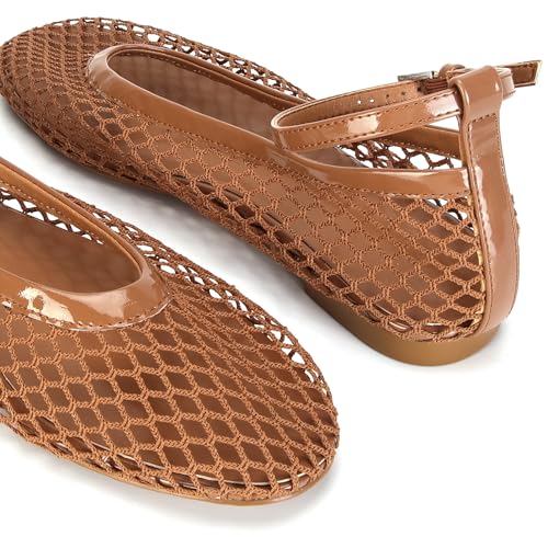 Mesh Ballet Flats for Women Round Toe Buckle Strap Fishnet Mary Jane Flats Comfy Casual Office Womens Summer Flats Shoes