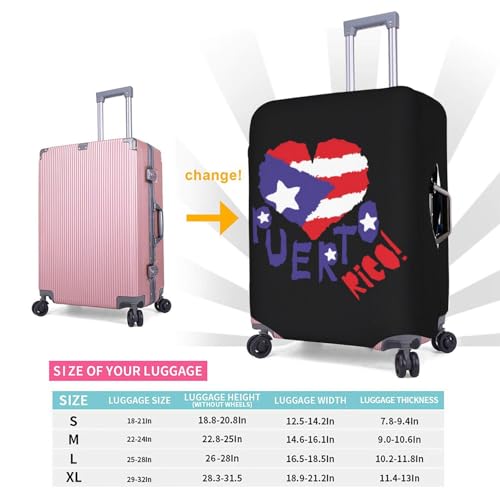 Heart With Puerto Rico Travel Luggage Cover Elastic Suitcase Protector Washable Baggage Covers For Trunk Case Fits 22-24 Inch Luggage