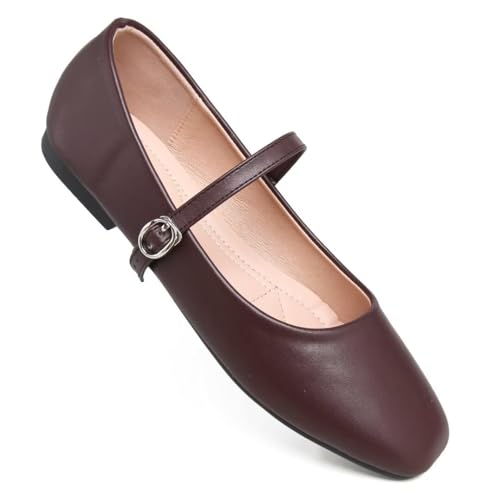 Stunner Ballet Flats for Women Women's Mary Jane Shoes Square Toe Casual Flats cozy Ankle Strap Flat Shoes Coffee 39(7) 2