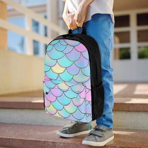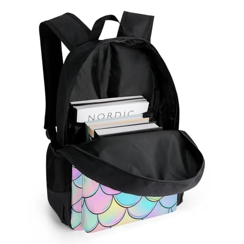 Supdreamc gorgeous Mermaid Fish Scale Rucksack Polyester Anti-Theft Multipurpose Bookbag Big Capacity Travel and Sport Backpack Rucksack With Side Pockets