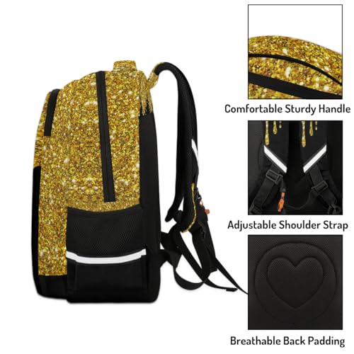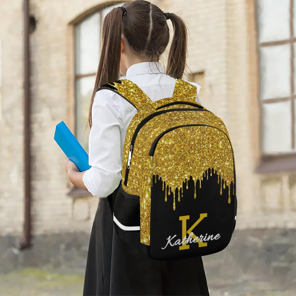 Personalized Kids Backpack Golden Glitter for Boys Girls, Custom Backpack Travel School Bag Bookbag Lightweight Daypack