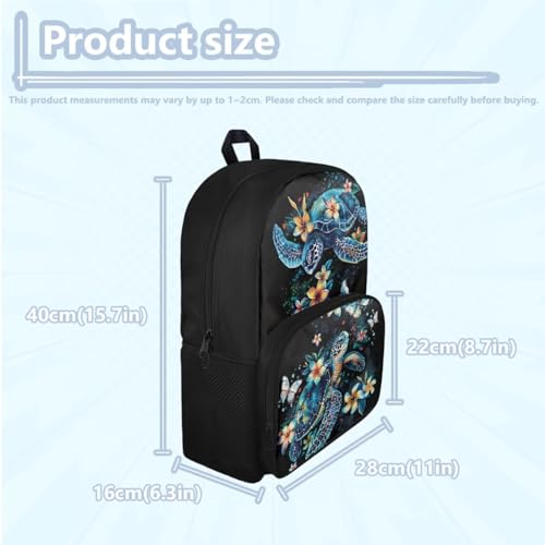 Turtle Preschool Backpack for Girls with Lunch Box Cute Bookbag School Bag Set for Kids Floral Kindergarten Backpack Children Book Bag 15.7 inch Travel Daypack Back Pack