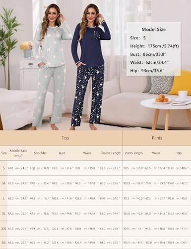 More information about Marvmys Womens Long Sleeve Pajama Sets 2 Pack Pajamas Tops and Pants Pj Sets Printed Pjs Sleepwear with pockets S-3XL
