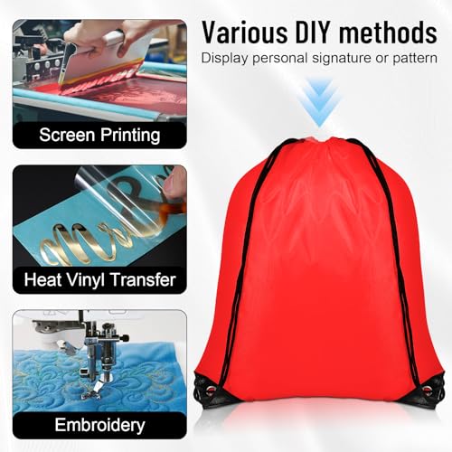 Drawstring Backpack Bulk: Our package contains 20 Pcs drawstring backpack, black and red colors. Sufficient quantity and rich colors can meet your various needs, you can also share them with your friends or familyDurable and Portable: This drawstring bags bulk are made of polyester, solid and not easily damaged. The size is about 42cm/16.5 inches long and 34cm/13.3 inches wide. They are also lightweight and can be folded into a small size for easy carryingDrawstring Closure: The bottom two corners of draw string bags are reinforced with triangle PU leather with two metal grommets. The drawstring design allows you to quickly store or take items, ensuring that your items will not fall outWide Appication: These drawstring backpack bags are large enough to meet your daily needs, suitable for fitness, traveling, hiking, camping and other outdoor activities.DIY by Yourself: Our gym sports sackpacks have no letters or patterns, you can DIY your favorite pattern to add vitality and color. Also a great sports gift for friends and family Perfect for everyday use. first-class materials and excellent craftsmanship ensure long-lasting durability.