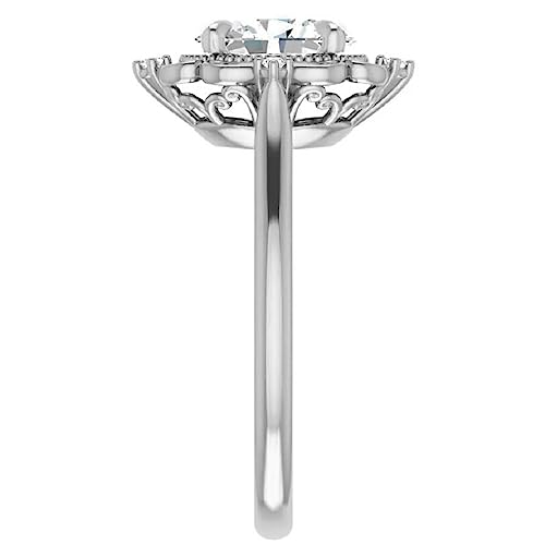 2.5 Carat 14K White Gold Vintage Halo Style Channel Ring Oval Brilliant Diamond Engagement Ring Milgrain with Moissanite Center