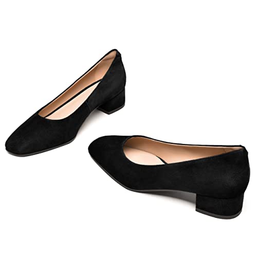 More information about FEMSTEP Women's Low Heels Suede Leather Block Casual Square Toe Slip On Chunky Pumps Shoes 1.5 Inch
