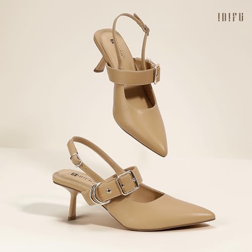 IDIFU IN3 Kitten Heels Slingback Closed Pointed Toe Low Pumps Dress Shoes for Women Bride Ladies Guest relaxing Dressy Formal Cute Wedding Office Work Business Buckle Heels Pumps