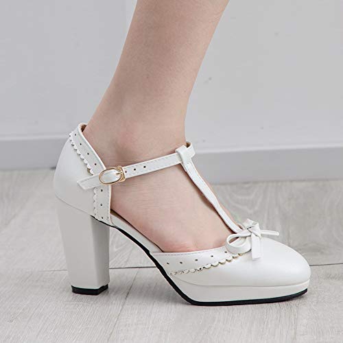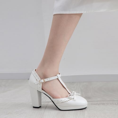 - [Fashion Design]: These t strap platform heels are designed with sweet bow, a buckle strap style, a round toe shape, a chunky heel, and a rubber sole.
