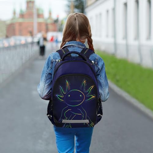 Rainbow Axolotl Backpack for Girls Kids Boys School Bookbags, Student Laptop Backpack Carrying Bag Casual Lightweight Travel Sports Day Packs