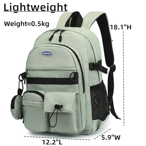 Leaper School Laptop Backpack for Women: Water Resistant Travel Backpack with Water Bottle Pocket - Laptop Bag for College Work - Lightweight Bookbag for Kids Girls Boys Green