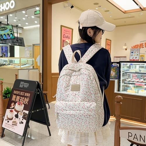 JHTPSLR Cottagecore Aesthetic Backpack Cute Vintage Floral Backpack Thick Cloth Flowers Laptop Backpack Mochilas (Small Floral)