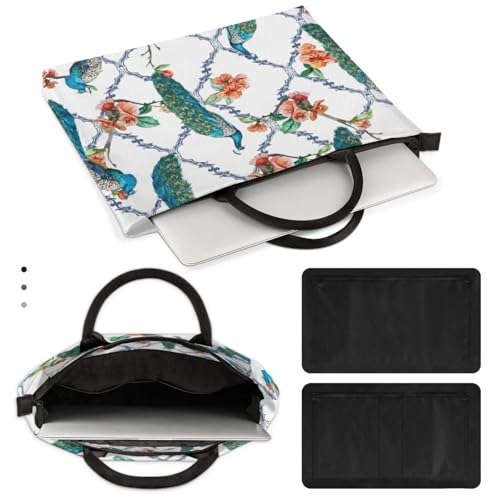 Peacocks Flowers Laptop Sleeve with Handle Waterproof Computer Carrying Case