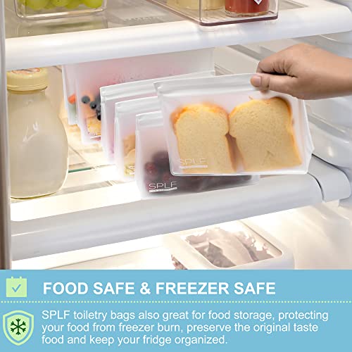 【TSA APPROVED】Set of 4 in two sizes. The 2pcs small clear travel toiletry bag strictly follows TSA 3-1-1 liquids rule for the carry-on bag of all airlines, so you can easily and quickly pass through security screening in the airport. The 2pcs large luggage bags are the faultless size to fit your carry-on luggage for travel or vacations.【TRANSPARENT & SAFE MATERIAL】The TSA-approved toiletry bag is made of food-grade PEVA material that is PVC, BPA, Chloride, and Lead-free. Healthy and safe for daily use. Transparent design makes it easier to spot your items and ensures the security staffs check the items quickly.【LEAKPROOF & EASY SEAL】No leaky metal zippers! Every SPLF clear toiletry bag has double-sealed seams that ensure an airtight, leakproof seal. Perfect for keeping shampoos, travel bottles, creams, and other liquids from leaking into your carry-on, case, or checked="checked" luggage from your toiletry travel bag. With an upgraded widened side and non-slip zipper design. You can easily open and close the toiletry bags.【REUSE & REDUCE WASTE】The better alternative to single-use plastic bags is easy to wipe clean and use over and over again. One extra thick reusable zipper bag can save more than 300+ disposable baggies, a perfect solution for plastic bag waste reduction.【MULTI-PURPOSE & 100% SATISFACTION】Not just for air travel – these bags make excellent organizers for toys, accessories, cosmetics, electronics, and perfect containers for food storage (lunch snack sandwich, etc.), home organization ( jewelry, stationery, etc.), outdoor picnics and more. Please contact us for solutions if you are not 100% satisfied with your toiletry bags. Perfect for everyday use. finest materials and excellent craftsmanship ensure long-lasting durability.