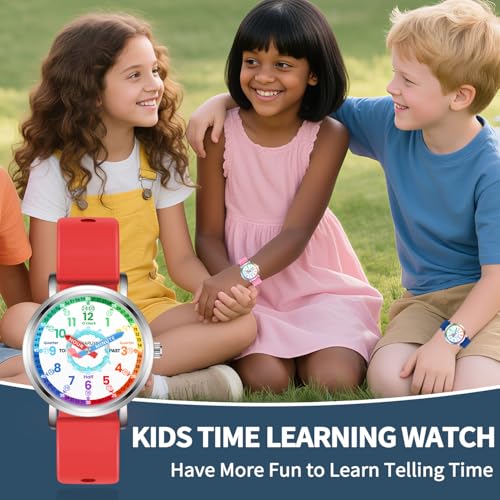Blisshour Kids Analog Watch, Pink Cute Whale Learning Watch for Kids 8-12, Waterproof Childrens Watches for Boys Ages 5-7 6-8, Girls Watches Red Strap
