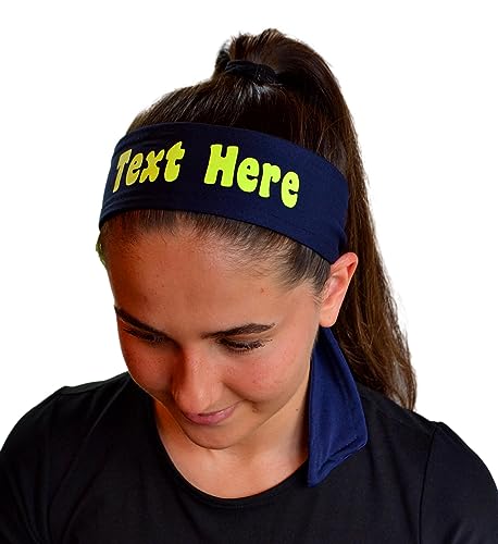 in-demand ! Tie Back Sport Headband with Your Custom Team Name or Text in Vinyl by Funny Girl Designs (White, 1 Headband)