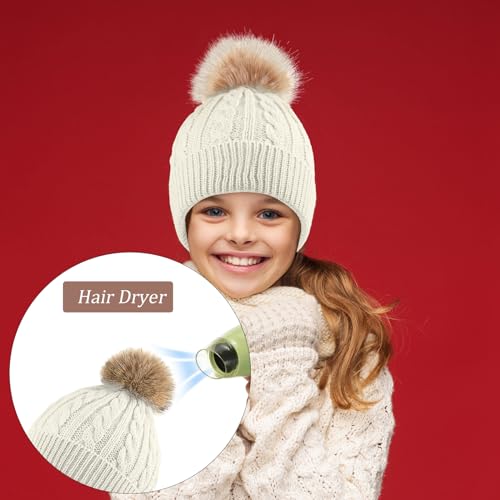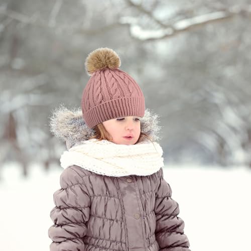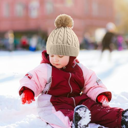 3 Pieces Kids Knitted Woolen Hat Winter cozy Pom Beanie Cap With Detachable Pom for 1-3 Years Old Girls Boys